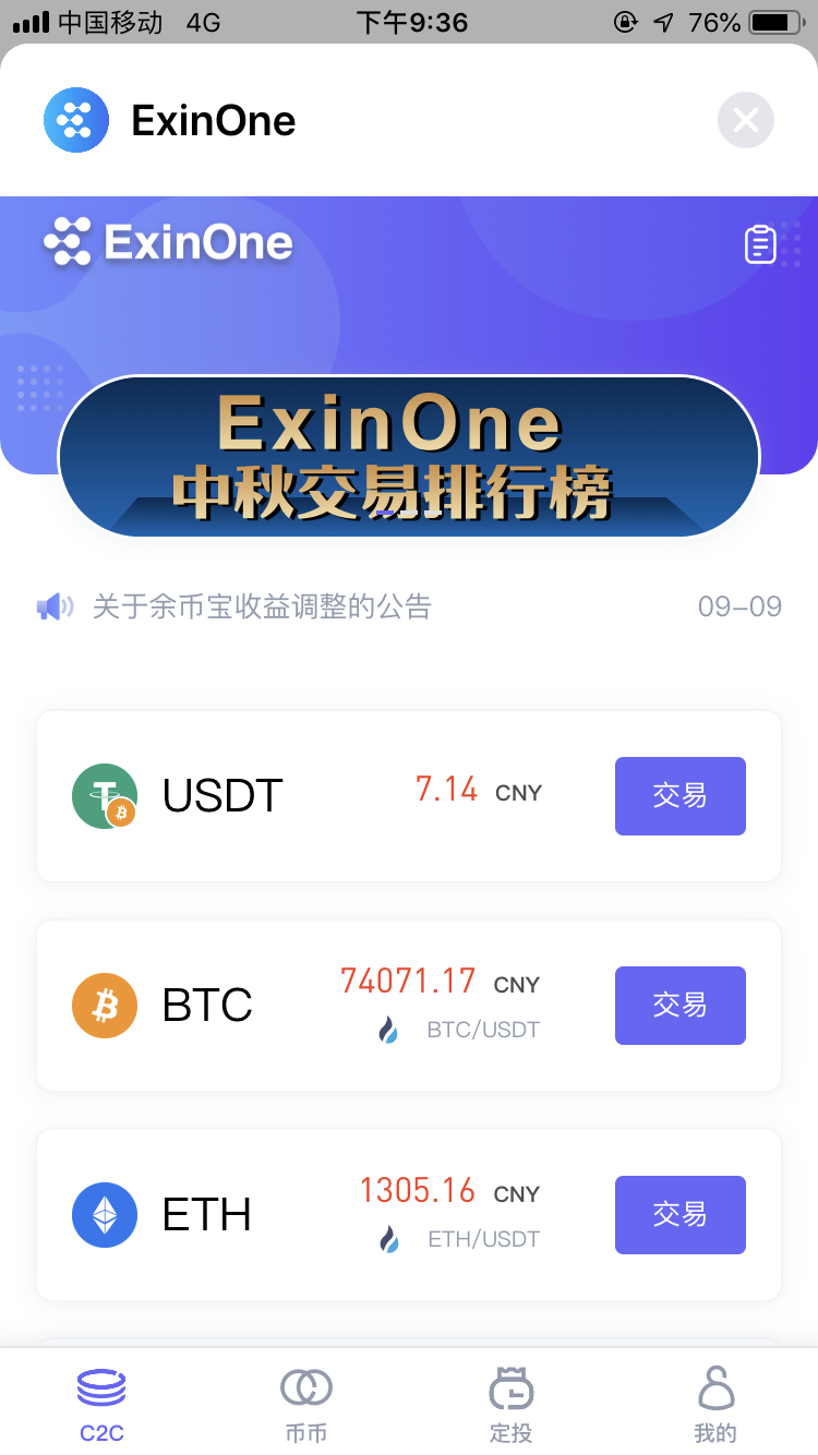Mixin 上最好用的交易所、余额宝及定投神器三合一的服务 ExinOne 就已经在那儿等你了,你必须拥有。在 Mixin 中所有的服务都被称作机器人,所以你现在只需要在 Mixin Messenger 中搜索 ExinOne(ID:7000101276) 将其添加为联系人即可。